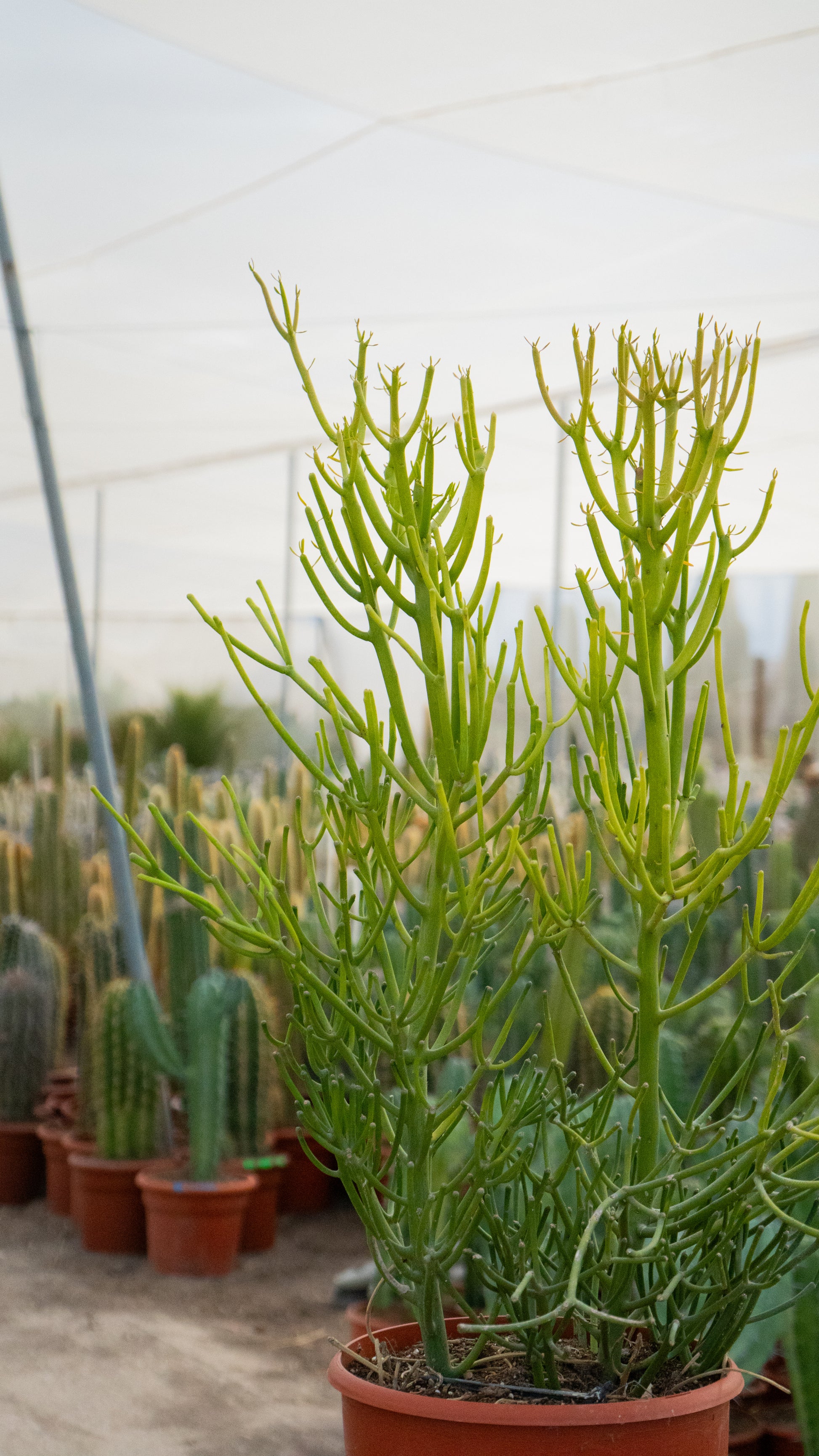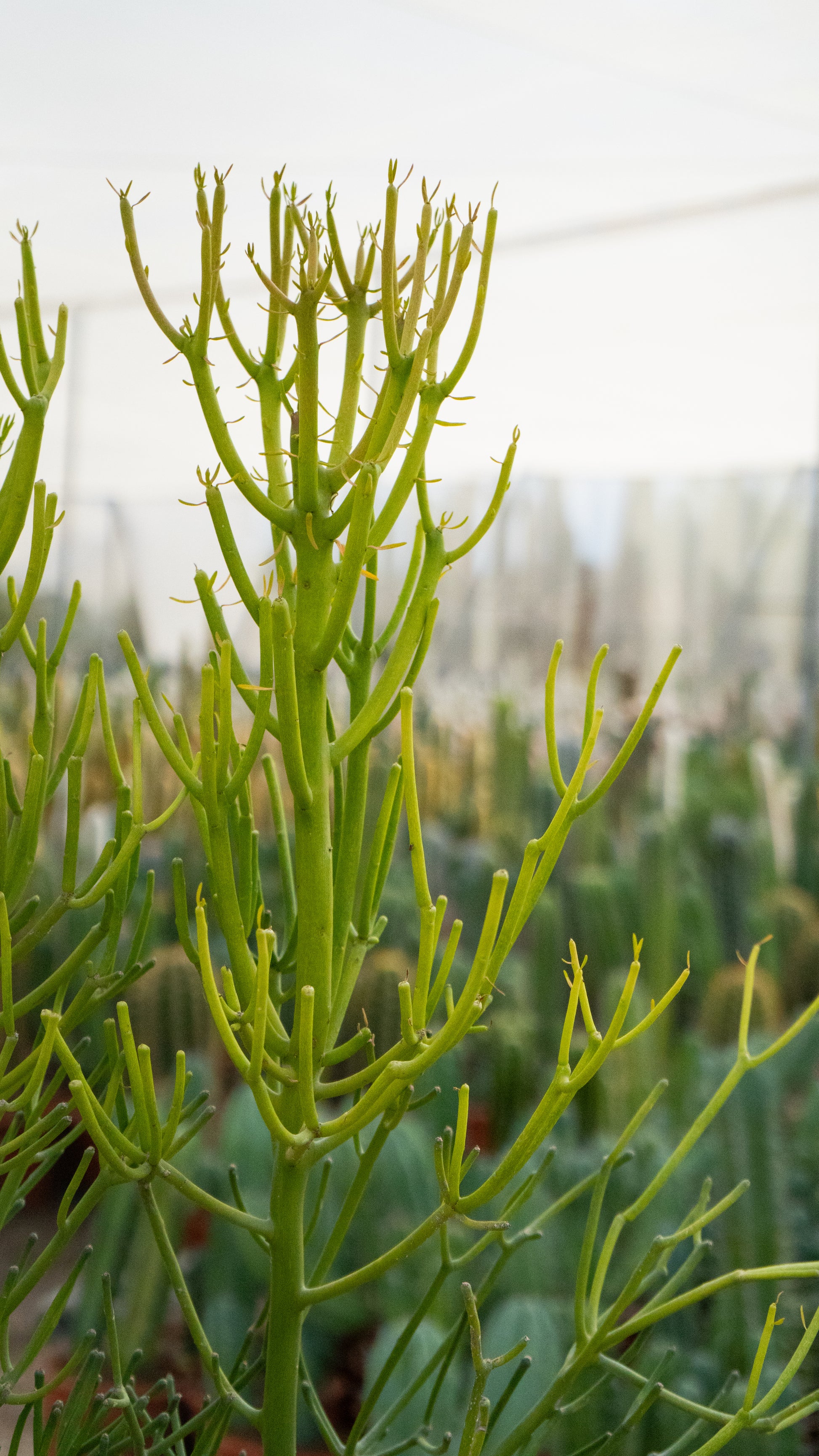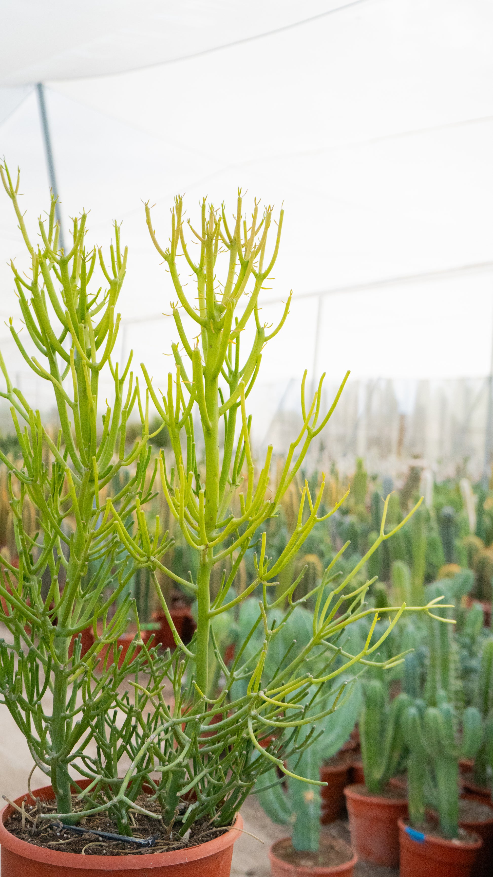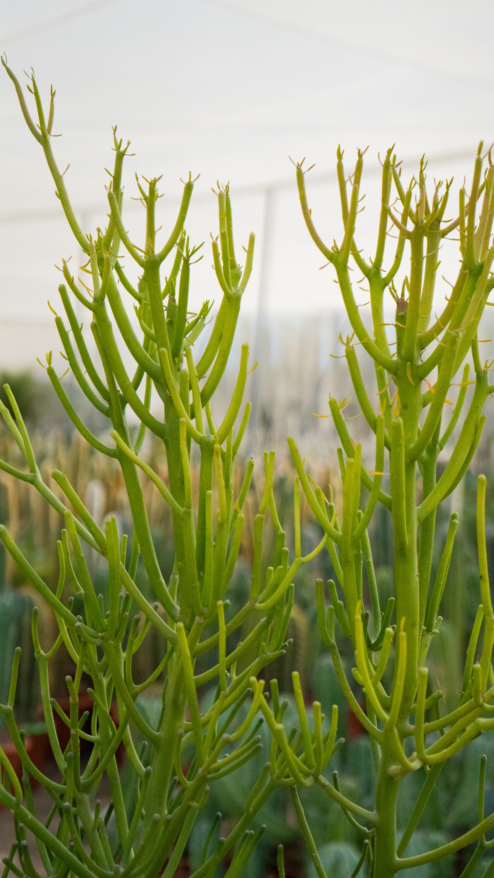 La Euphorbia tirucalli, conocida como "árbol de dedos" o "árbol de goma", es una suculenta de crecimiento rápido.