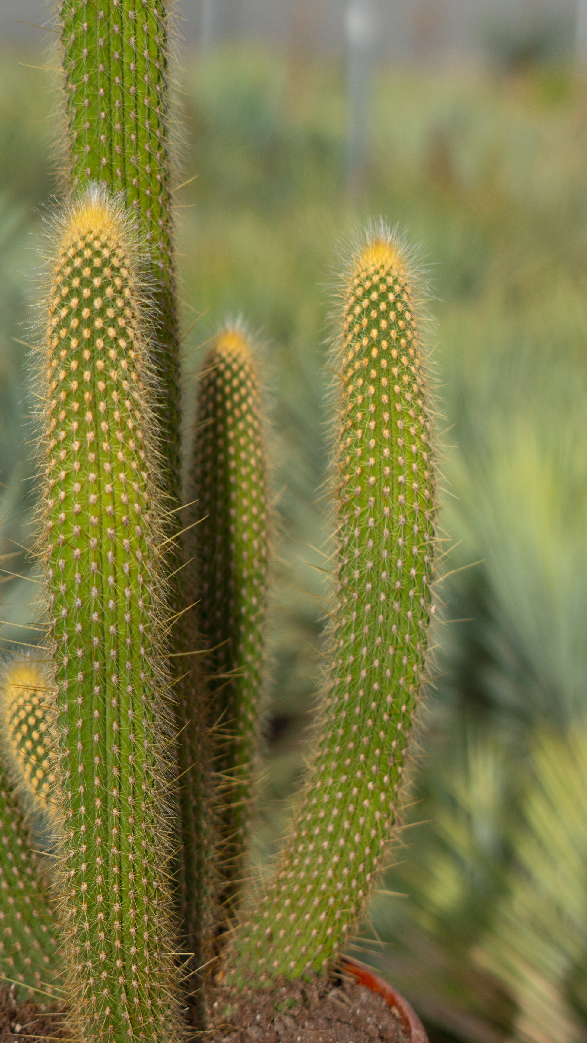 Este cactus de crecimiento lento se distingue por su manto de pelos blancos, especialmente en sus primeras etapas de vida.